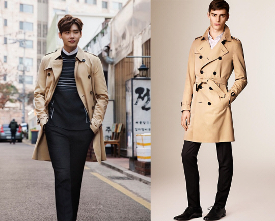 이종석과 모델이 착용한 트렌치코트는 버버리의 오리지널 감성이 그대로 살아있는 아이템. 이종석은 이너 아이템으로 셔츠와 라인 포인트가 들어간 니트를 레이어드해 지적이면서도 세련된 무드를 강조했다. 단추 여밈을 풀어 자연스럽고 자유분방한 멋을 살리게끔 연출했다. 반면 모델은 셔츠가 살짝 보이도록 한 뒤 허리 벨트를 여미어 트렌치코트의 고급스럽고 클래식한 매력을 그대로 살렸다.