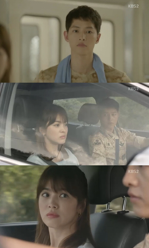 [스포츠조선 조윤선 기자] '태양의 후예' 송혜교가 송중기와 첫 키스 후 복잡한 감정이 휘말렸다.