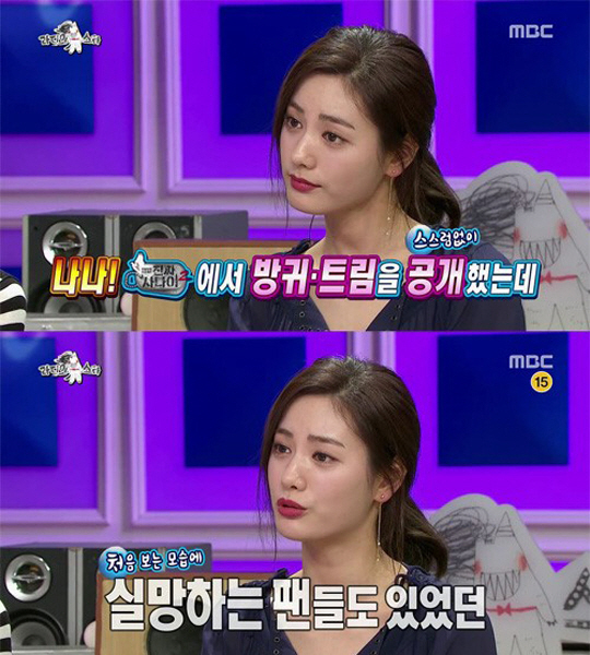 나나는 '주변 반응은 어떠냐'라는 김구라의 질문에 "내 개인적인 팬들들은 내게 실망한 분들도 꽤 있다"라고 답했다.