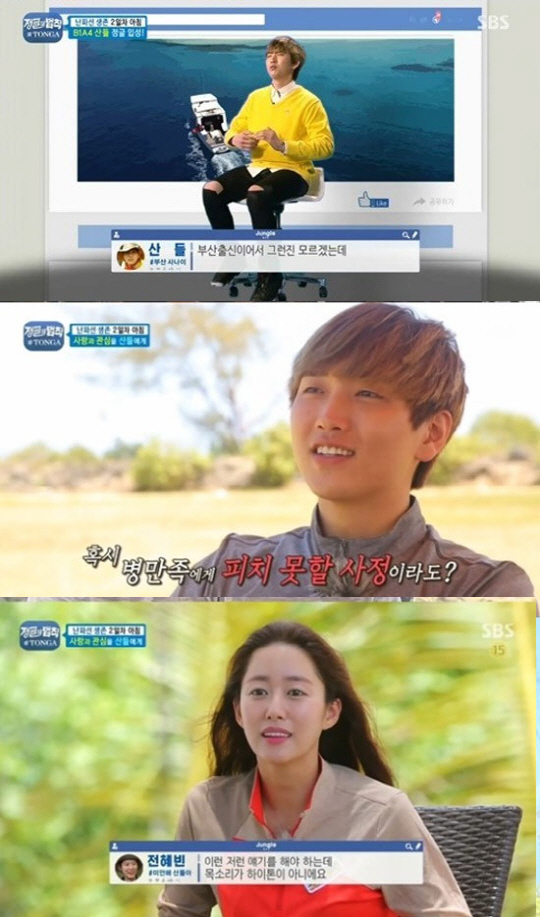 부산 출신인 산들은 "수영은 자신 있다. 젊어서 고생은 사서 고생이라고 생각한다"라며 포부를 드러냈다. 하지만 의욕이 넘치는 산들과 달리 첫날 밤 너무 힘들었던 멤버들의 환영인사가 생각보다 시들했다.
