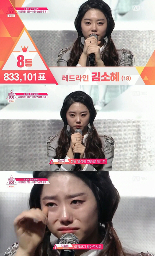 [스포츠조선 조윤선 기자] '프로듀스 101' 김소혜가 8위를 차지했다.