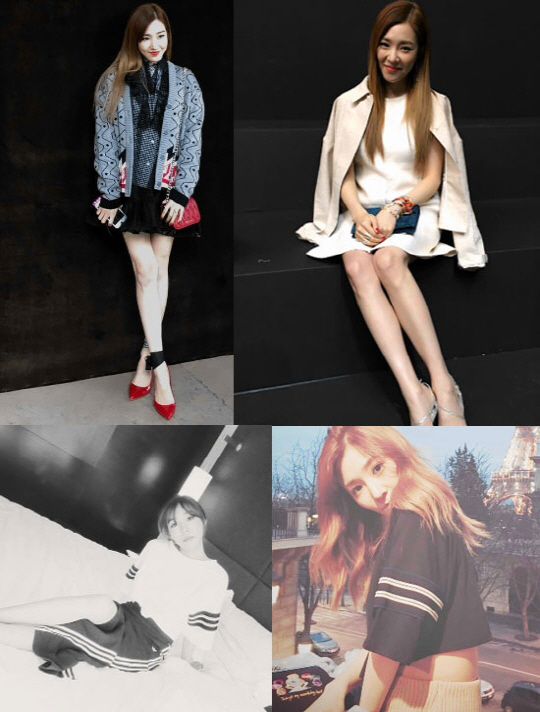 패션쇼-각 브렌드의 주요 포인트를 잘 살린 스타일로 다양한 매력을 선보였다. '디올'에서는 핑크빛 숙녀로, '아크네 스튜디오'에서는 청 재킷을 매치한 스포티함을 강조, '에르메스'는 푸른빛 가방 포인트로 '미우미우'에서는 빨간 포인트 슈즈 등을 매치했다. 특히 각 스타일 마다 티파니의 각선미가 강조되며 아름다움을 더했다.