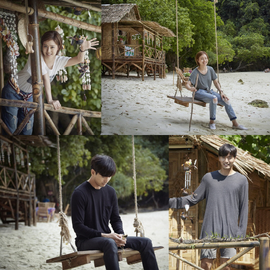 공개된 사진 속 이진욱과 문채원은 아름다운 풍광을 배경으로 평화로운 시간을 보내고 있다. 하얀 모래사장 위에 지어진 작은 집과 나뭇가지에 매달린 그네, 그 안에서 행복한 웃음을 짓고 있는 두 사람의 모습이 시선을 사로 잡는다.
