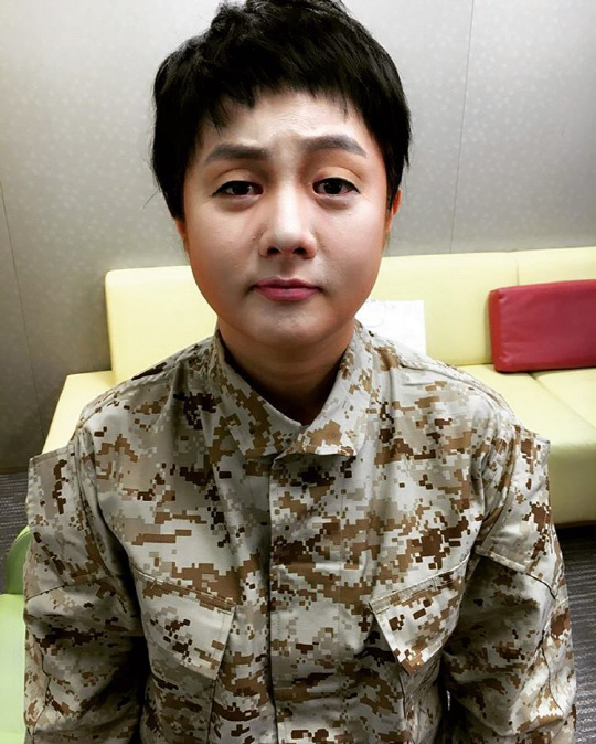 사진 속 박나래는 화제의 드라마 '태양의 후예'의 송중기(유시진 역)로 분장한 모습. 극 중에서 특전사 대위로 나오는 송중기를 따라잡기 위해 박나래는 짧은 머리에 군복을 갖춰 입은 모습으로 눈길을 끌고 있다.