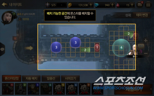 자신이 선택하는 배경에 따라 공간에 조금 차이가 있어 배치가 달라질 수 있고, 앞으로 유저들이 파고들만한 요소가 있는 부분이다. 자동 배치도 있어 간단하게 접근할 수도 있지만 PvP를 선호하는 유저와 선호하지 않는 유저에 따라 콘텐츠 이용률은 차이가 날 수 있을 것으로 보인다.