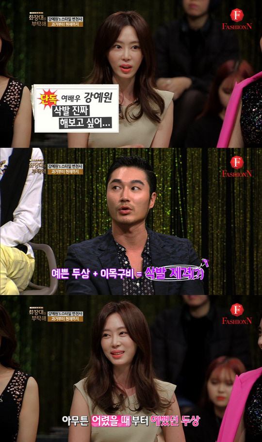강예원은 16일 방송되는 패션앤(FashionN)의 '화장대를 부탁해'에 게스트로 출연한다. 앞서 진행된 녹화에서 강예원은 엉뚱한 매력으로 스튜디오를 사로 잡았다.