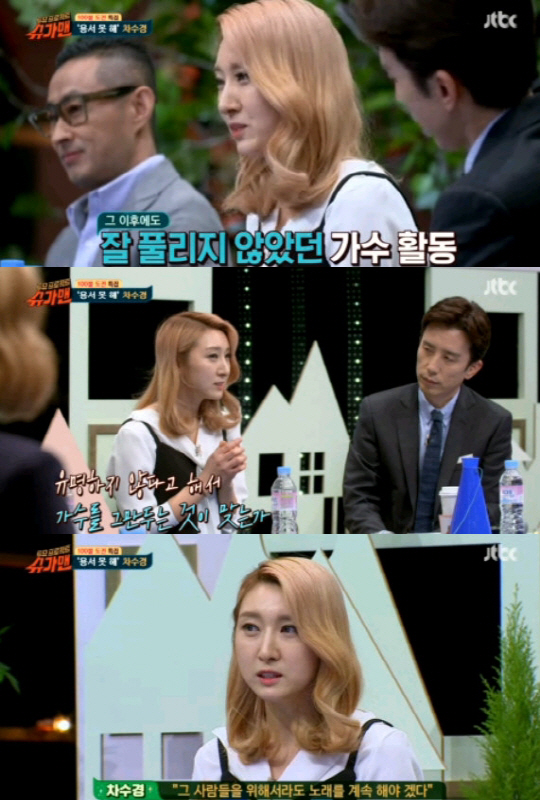 차수영은 "싱글 앨범을 바로 냈는데 '용서 못해'가 너무 강해서 묻혀벼렸다. 이후에도 계속 잘 안됐다. 중간에 가수는 내 길이 아닌가 싶어서 1년 정도의 공배기를 가졌다"고 털어놨다.