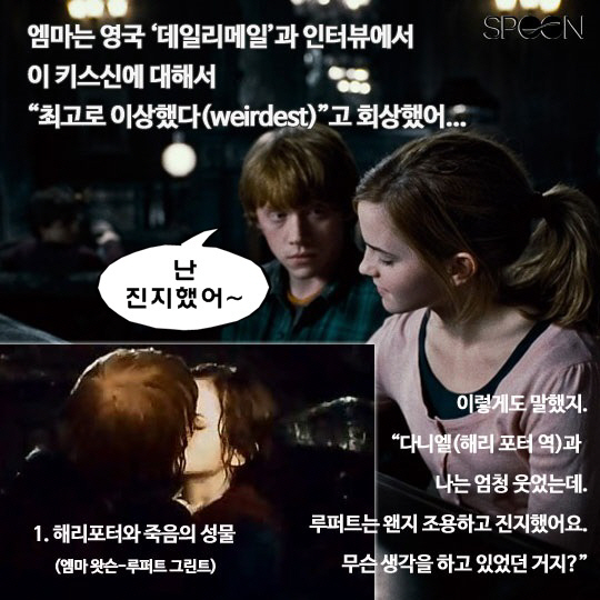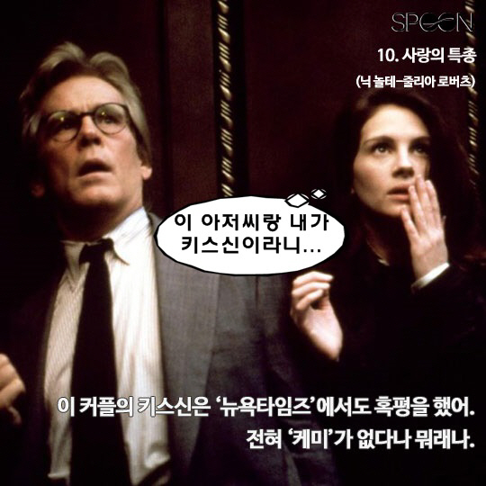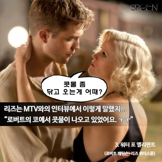 [스포츠조선 고재완 기자] 톱배우들은 만인들의 동경의 대상입니다. 디자이너들이 만든 고급 옷을 입고 럭셔리한 행사에 VIP로 초대를 받죠. 대중들은 그들의 재능을, 미모를 그리고 그들의 통장 잔고를 부러워합니다. 하지만 스타급 배우라는 명예가 항상 즐겁지 만은 않습니다. 그런 명예와 함께 그들에겐 어두운 면도 분명히 존재합니다. 그 어두운 면 중 하나가 바로 키스신인데요. 끔찍한 상황, 끔찍한 상대와 키스신을 촬영해야한다면 정말 불편하고 싫지 않을까요. 미국의 한 웹진은 배우들에게 가장 끔찍했던 키스신 베스트15을 꼽았습니다.