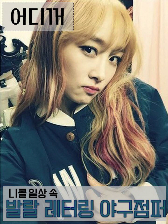 [어디꺼] 니콜 일상 속 매력적인 블루 포인트 야구점퍼?