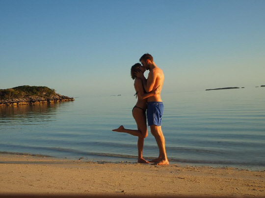 사진 속 테일러 스위프트와 캘빈 해리스는 노을이 지는 해변을 배경으로 로맨틱한 키스를 나누고 있는 모습. 아름다운 두 사람의 모습은 영화 속 한 장면을 떠올리게 만든다. 또 테일러 스위프트는 모래 위에 자신의 이름과 캘빈 해리스의 본명인 애덤 윌스의 약자를 새기며 남다른 애정을 드러냈다.