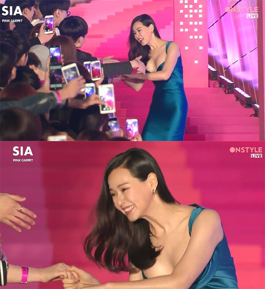 핑크카펫 MC 이특은 "팬 한분 한분 손을 잡아주고 계신다. 편하게 내려오셔도 괜찮다"며 "에릭남씨가 좀 모시고 와 달라. 이하늬씨 정말 아름답다"고 말했다.