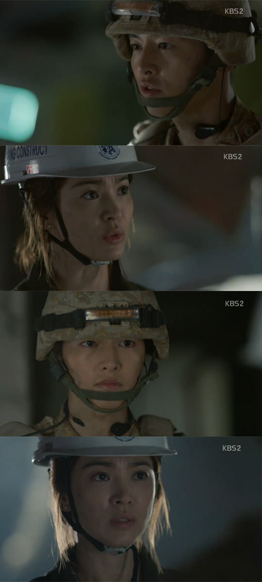 이에 송혜교는 안타까움에 고개를 떨구며 구조 순서를 지시했다. 결국 송혜교는 한국인 근로자 대신 현장 근로자를 구하는 것을 선택했다. 송중기는 한국인 근로자의 시신에 경례를 올리며 마지막 인사를 전했다.