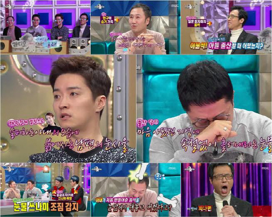 이어 이윤석은 "이윤석씨는 7년만에 얻은 아들?"이라는 말에 눈물이 그렁그렁 맺힌 눈으로 임신이 되기까지 힘들었던 상황을 떠올렸고, 유열은 너무도 고생스러운 시간 후 제왕절개를 했던 아내로 인해 혼자 아이를 받아야 했던 그 순간을 떠올리며 눈물 지어 눈길을 사로잡았다. 이런 네 사람의 감동 젖은 눈물에 시청자들은 함께 울 수 밖에 없었다.