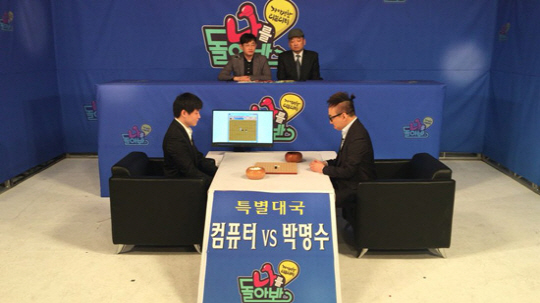 바로 컴퓨터와의 오목 대결을 제안한 것. 이날 이세돌 9단과 알파고의 대국장 모습을 그대로 재현한 세트장에서는 긴장감이 흘렀다.