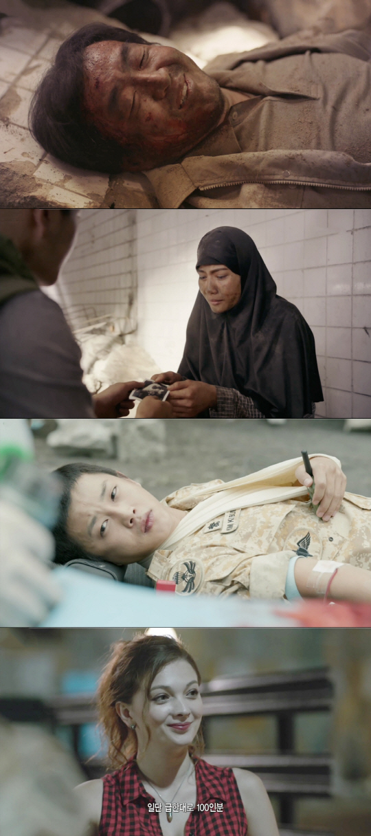 [스포츠조선닷컴 정안지 기자]'태양의 후예'가 재난으로 인한 희생자, 구조에 투입된 군인과 의사들을 모두 주인공으로 만들었다. 고통과 절망을 이겨낸 건 함께 연대한 사람들이었다. 그리고 오늘(17일) 방송되는 8회에선 죽음을 맞이한 고반장(남문철)의 감동 스토리를 예고했다.