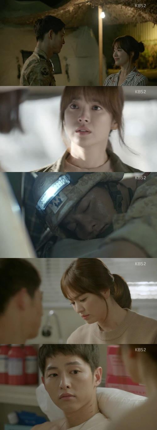 [스포츠조선 조윤선 기자] '태양의 후예' 송중기와 송혜교가 서로의 진심을 확인했다.