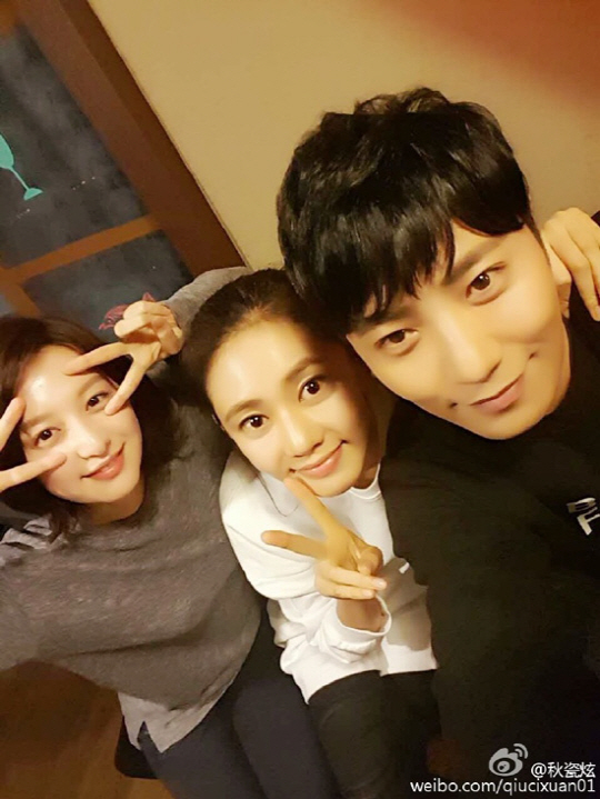추자현은 18일 자신의 웨이보에 "나의 10년지기 친구 진구 '태양의 후예' 서대영으로 멋있게 변신하다. 얼굴도 예쁜데 예의 바르고 착한 지원이도 화이팅!"이라는 글과 함께 사진을 게재했다.