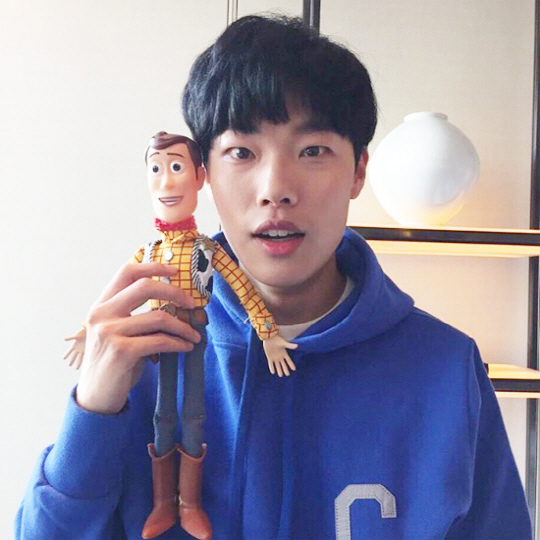 파란색 후드티 차림의 류준열은 팬들을 향해 '닮았느냐'고 물어보는 듯 우디 인형을 자신의 얼굴에 가까이에 대고 있어 시선을 집중시켰다.
