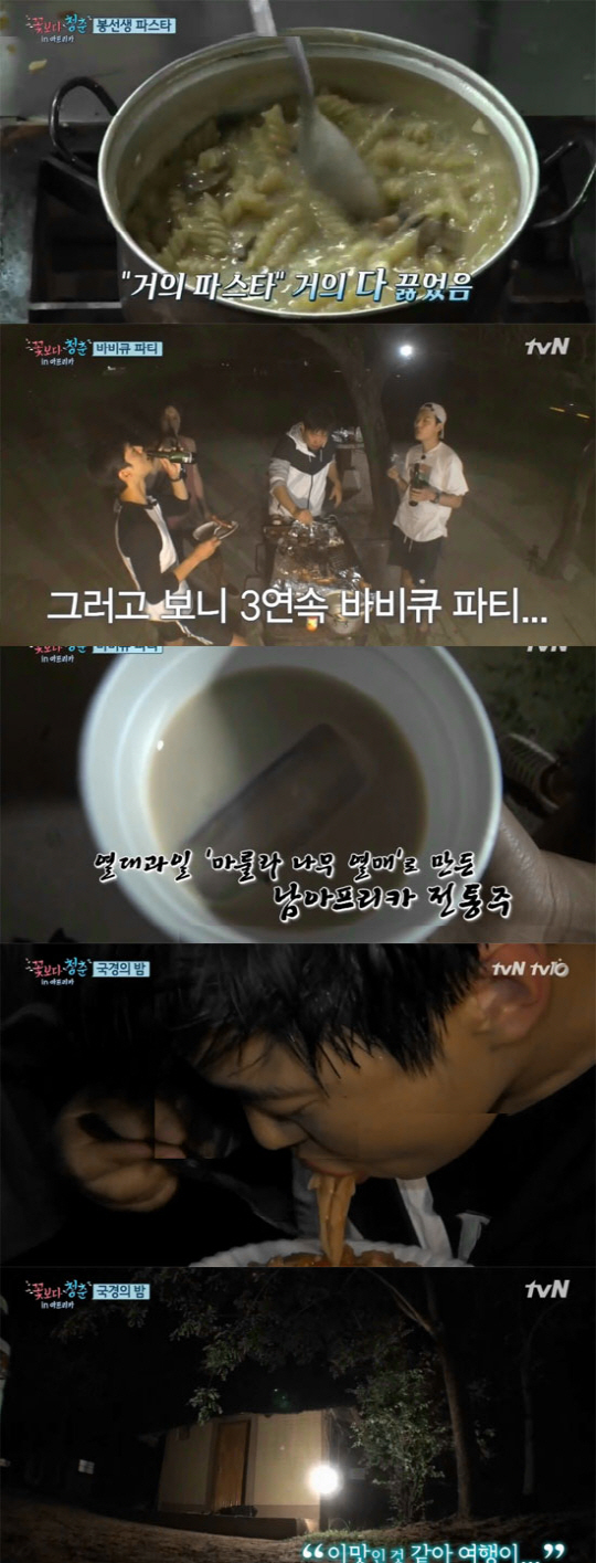 최종 목적지 빅토리아 폭포를 가기 위해 들른 숙소에서 맞이 하는 저녁 역시 여행의 즐거움을 안겼다. 불 지피기는 막내 고경표와 박보검 담당, 요리는 안재홍이 보조는 류준열이 맞추며 이제는 누가 시키지 않아도 일사분란하고 능숙하게 저녁을 준비한다. 면보다 소스를 먼저 만들며 시행착오를 거듭하기도 하지만 긍정적인 마인드로 결국 맛있는 토마토 파스타를 완성한 네 청춘들은 이날 밤도 배부른 식사를 마쳤다.