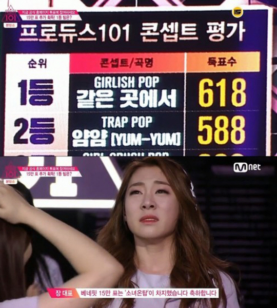 하지만 이들의 고민은 좋은 결과로 이어졌다. 3000명의 국민 프로듀서 평가에서 소녀온탑 팀은 1등을 차지했다. 작곡자 진영도 "너무 잘했다"라고 만족감을 드러냈다.