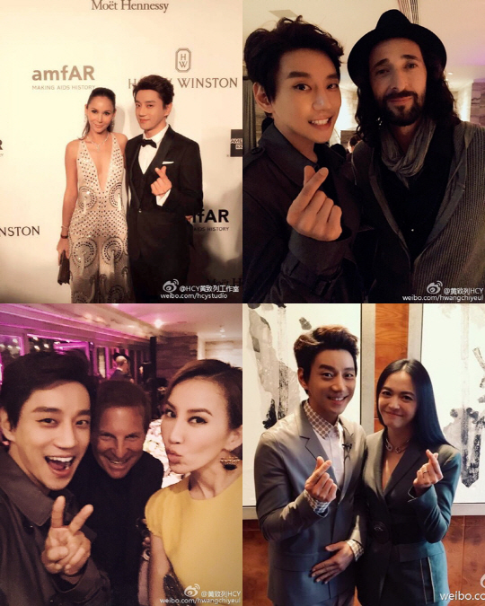 사진 속 황치열은 글로벌 스타들과 함께 자신의 트레이드 마크인 손가락 하트를 만들어 보이며 환한 미소를 지어보였다.