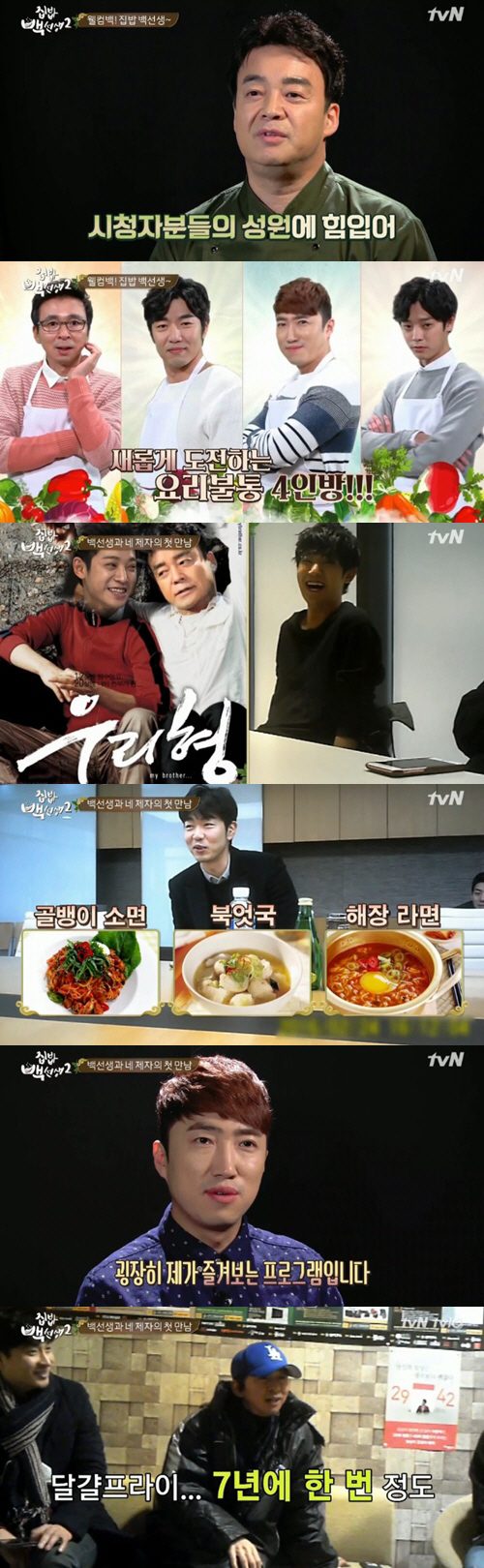 한편 '집밥 백선생2'는 누구나 집에서 쉽게 요리를 할 수 있는 생활 밀착 예능 프로그램으로 김국진, 이종혁, 장동민, 정준영이 '백선생' 백종원의 새로운 제자로 참여한다. 매주 화요일 오후 9시 40분 방송.