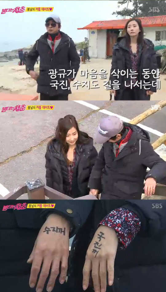 22일 오후 방송된 SBS '불타는 청춘'에서 김국진과 강수지, 이형철과 김완선, 김광규와 신효범이 봄날의 커플 데이트를 즐겼다.