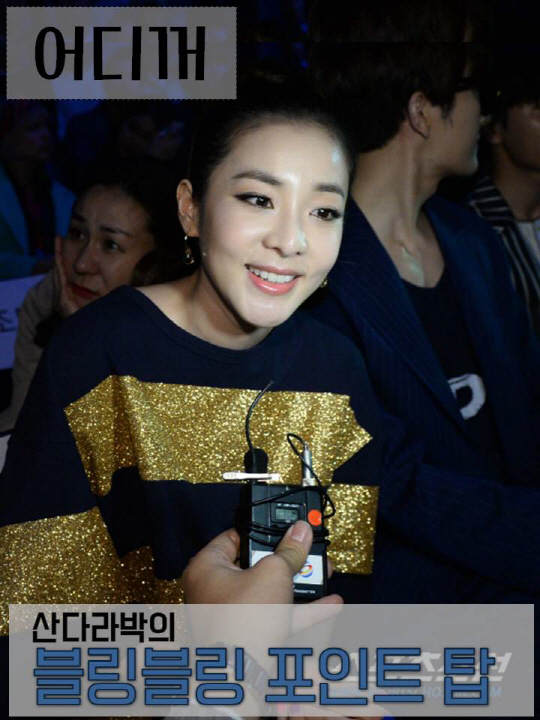 [어디꺼] 'SFW' 산다라박의 블링 골드스트라이프 탑?