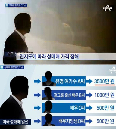 먼저 인지도가 높은 A씨는 하룻밤에 3,500만 원, B씨는 1,000만 원, C씨와 D씨는 각각 500만 원을 성매매 대금으로 받았다.