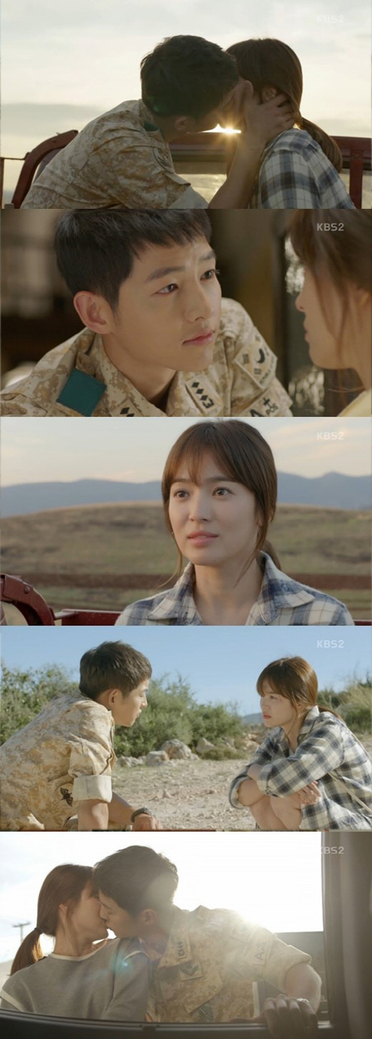 이후 드디어 강모연의 고백이 이어졌다. 차를 잃은 두 사람은 다른 사람의 차를 얻어 타고 이동했고, 강모연은 "나 한국에 안 간다. 대위님이랑 조금이라도 더 같이 있고 싶어서 그렇다. 나 지금 고백하는 거다"고 유시진에게 속 마음을 털어놨다. 이에 유시진의 키스로 대답하며 드디어 '송송커플'의 탄생을 알렸다.
