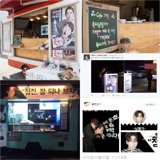 황찬성은 자신의 트위터를 통해 "tvN 드라마 '기억'에 정진 역으로 나오는 준호를 응원할 겸 염탐하기 위해 커피차를 보냈습니다. 방금 현장도 갔었는데 인증샷을 찍는 걸 깜빡했네요. 커피차 쐈다고 감독님이 현장 스태프분들에게 인사도 시켜줬습니다"라는 글과 함께 사진을 게재했다. 커피차에는 "정진, 잘 되나 보자"라는 짓궂은 문구가 담긴 현수막이 걸려 있어 폭소를 자아낸다.