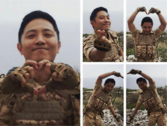 [스포츠조선닷컴 이지현 기자] 배우 진구가 '태양의 후예' 30% 돌파 기념 반전 애교샷을 공개했다.