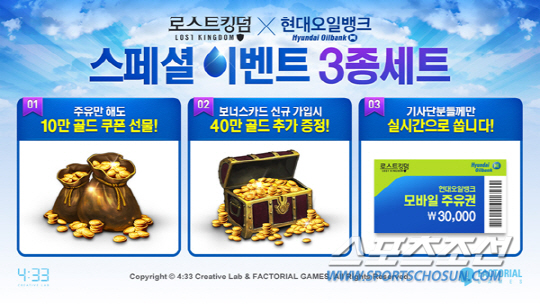 이와 함께 최근 진행한 이벤트도 네시삼십삼분만의 노하우가 담기면서 눈길을 모았다. 보통의 게임들은 게임과 연관된 이벤트나 타 게임과의 크로스 프로모션을 주요 이벤트로 삼지만 '로스트킹덤'은 특이하게도 게임과 주유소의 연계 이벤트를 실시했다. 주요 이용자층인 20~40 남성 유저들의 잔존율을 높이기 위해 현대오일뱅크와 제휴 이벤트를 진행했으며 긍정적인 반응을 이끌어 내고 있다.