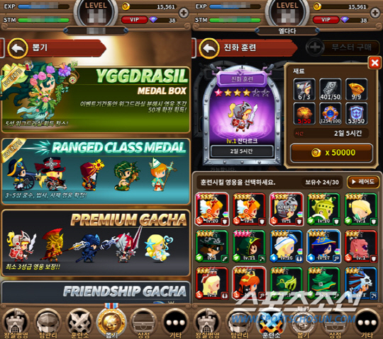 단순한 플레이와 SD 캐릭터들로 인해 게임자체도 단순하다고 생각한다면 오산이다. 기본적인 모바일 RPG 콘텐츠는 모두 가지고 있으며 캐릭터의 성장 과정은 상당히 심오해 게임 플레이 자체에 탄탄한 순환 과정을 만들어 명확해 구성해 놓았다.