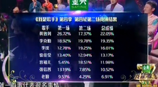 [스포츠조선 이유나 기자]황치열이 중국판 나가수 경연에서 백지영의 '총맞은 것처럼'을 불러 4위를 기록, 종합 1위로 가왕전에 진출했다.