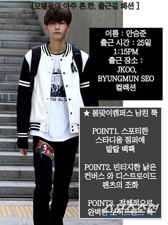 POINT1. 스포티한 스타디움 점퍼에 발랄 백팩
