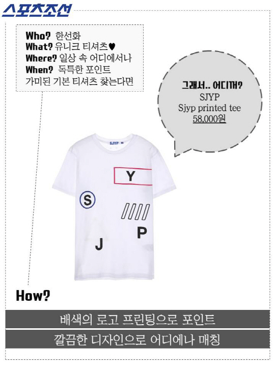 #어디꺼 #스포츠조선 #한선화 #서울패션위크 #티셔츠 #뭔가_막_그린_것_같지만_유니크해 #남다른_기본_아이템 #SJYP