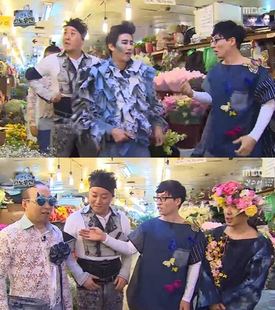 하하는 꽃이 달라붙어 있는 의상을 선택했고, 정준하는 부츠컷으로 몸매를 부각시켰다.