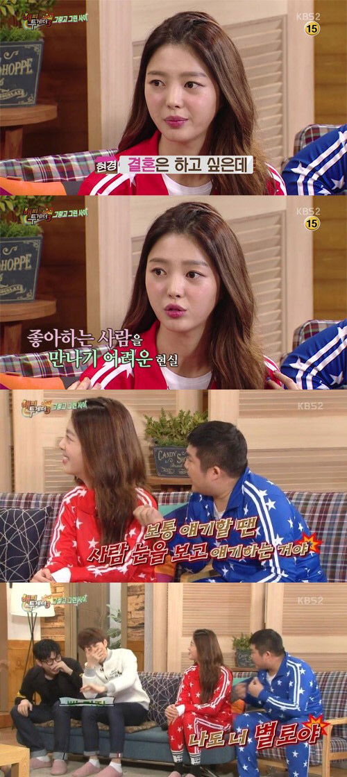 이에 MC 박명수가 조세호를 가리키며 "옆에 있는 사람은 어떠냐?"고 물었지만, 엄현경은 고개를 조세호 쪽으로 돌리지 않고 시선을 회피했다. 그러자 조세호는 "보통 얘기할 땐 사람 눈을 보고 얘기하는 거다"라고 성을 냈다.