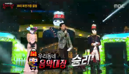 27일 방송한 MBC 예능 프로그램 '일밤-복면가왕(연출 민철기, 노시용)'은 5연승에 도전하는 가왕 '우리동네 음악대장'과 가왕전에 오른 '넘버세븐'이 팽팽한 대결을 펼쳤다.