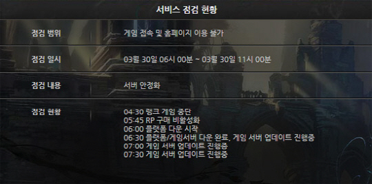 현재(7시 30분 기준) 게임서버 업데이트가 진행 중이다.