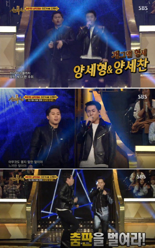 지난 30일 방송된 SBS 새 음악예능 '보컬전쟁-신의목소리' 첫 회 방송에서 제작진이 숨겨놓은 게스트 '양세형-양세찬'형제는 '신의 한 수'였다. 방송 중반 빅뱅의 '판타스틱 베이비'를 부르며 등장한 형제는 춤과 랩을 곁들이며 노래를 이어나가자 객석에서는 환호성이 터져나왔고, 신의목소리도 환호하며 무대를 뜨겁게 달궜다.