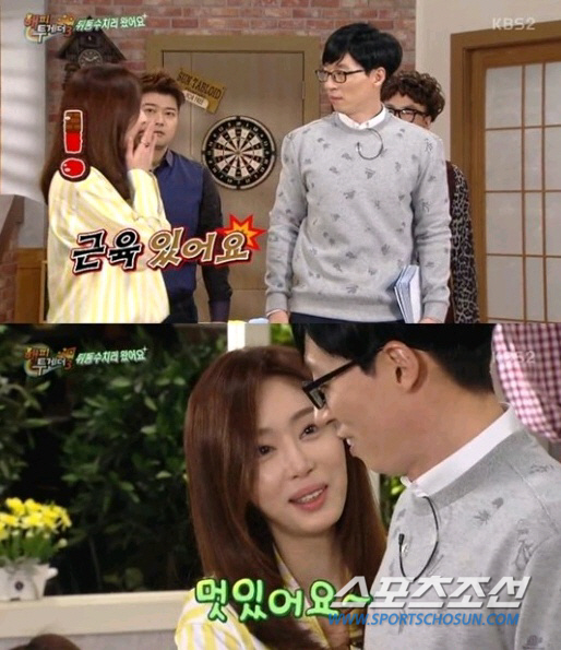 [스포츠조선닷컴 김준석 기자] '해피투게더' 강예원이 유재석의 근육질 몸매에 반했다.