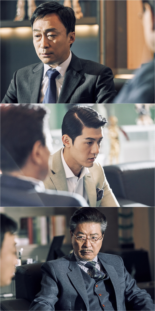 tvN 금토드라마 '기억' (극본 김지우 /연출 박찬홍)속 태선로펌의 에이스 변호사 박태석(이성민 분)이 클라이언트인 한국그룹의 신회장(이정길 분), 그의 아들 신영진(이기우 분)과 살벌한 회동을 갖는 모습이 포착돼 긴장감을 자아내고 있다.