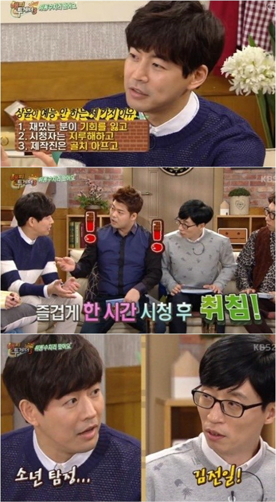 지난 31일 방송된 KBS2 '해피투게더'에는 이상윤이 강예원, 송재희, 한보름, 오마이걸 멤버 효정과 함께 출연해 '뒷통수 치러 왔어요' 특집에 출연해 솔직한 입담을 발산했다.