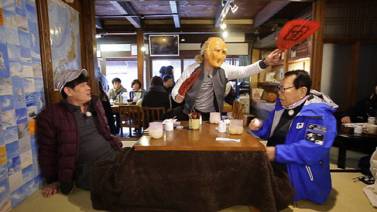 이것이 끝이 아니었다. 행운의 맛집에서는 탈을 쓴 사람이 부채를 들고 상대의 머리를 때려주면 맞은 사람의 액운이 달아난다는 이야기가 전해져 왔다.