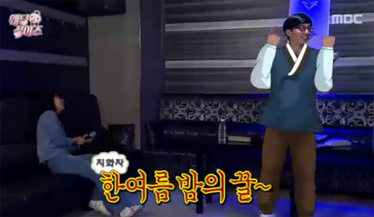김희애는 마이크를 잡고 '한 여름밤의 꿈'을 불렀고, 유재석은 "방금 타령 같았다"고 말하며 동작을 따라해 웃음을 자아냈다.