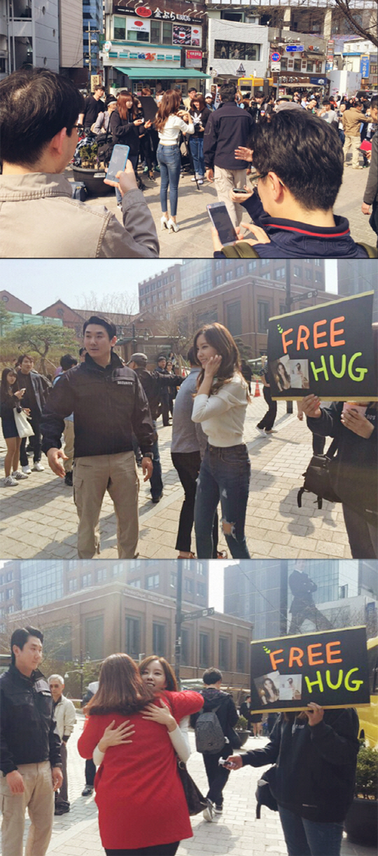 [스포츠조선 고재완 기자] 가수 효민이 명동을 찾아 프리허그 이벤트를 가졌다.