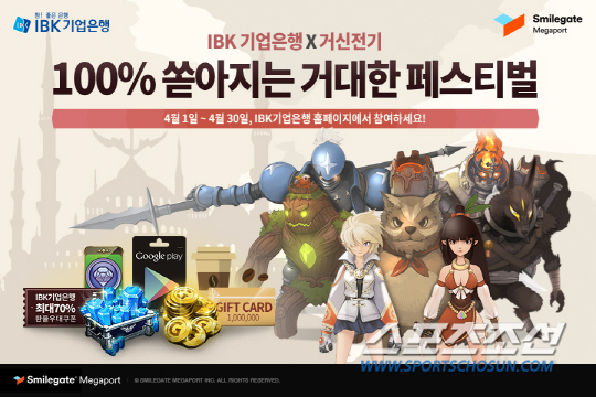 스마일게이트 메가포트는 IBK기업은행과 손잡고 거신교감 애니액션 RPG '거신전기'에서 제휴 프로모션을 진행한다.