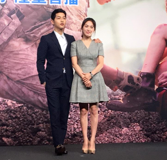 KBS2 '태양의 후예' 송중기와 송혜교는 5일 진행된 홍콩 'Viu TV' 프로모션 기자간담회에 참여했다.